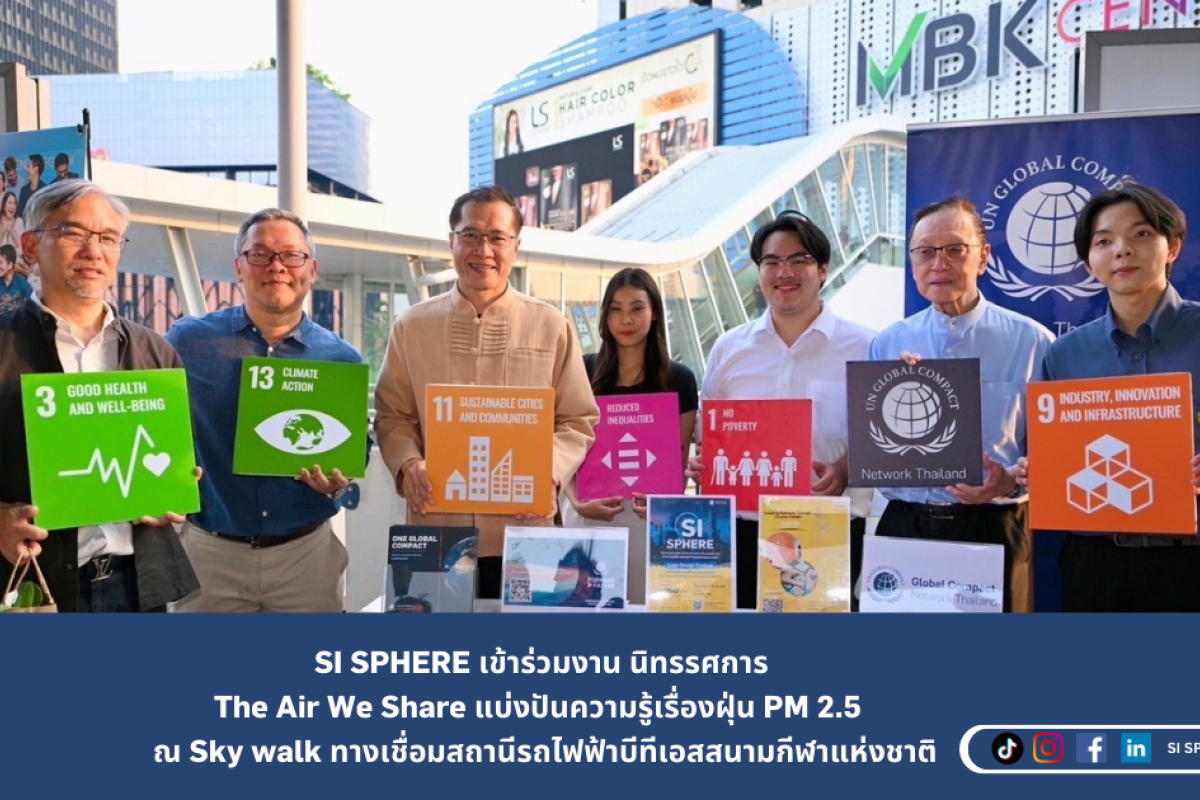 SI SPHERE เข้าร่วมงาน นิทรรศการ The Air We Share แบ่งปันความรู้เรื่องฝุ่น PM 2.5 ณ Sky walk ทางเชื่อมสถานีรถไฟฟ้าบีทีเอสสนามกีฬาแห่งชาติ โดยกลุ่มบริษัทบีทีเอส ร่วมมือกับ สสส. และ กทม. จัดกิจกรรมระหว่างวันที่ 22 มีนาคม ถึง 3 เมษายน 2567